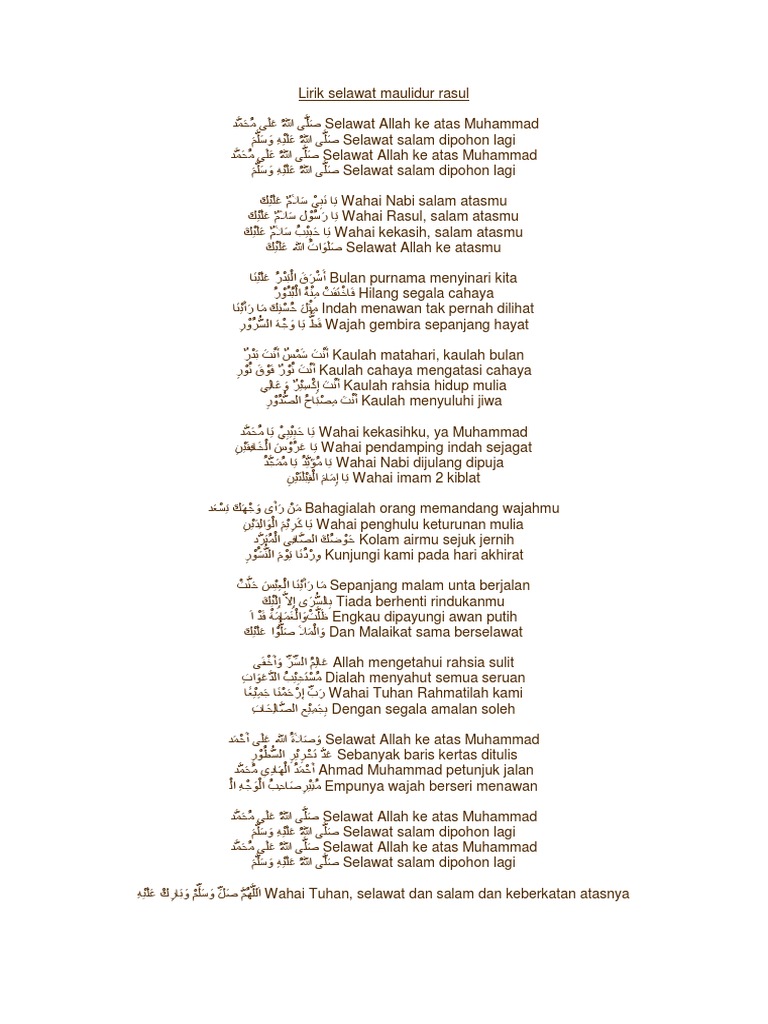 Aug 07, 2018 · keutamaan sholawat nabi sungguh luar biasa. Nah anem kongsikan sedikit bacaan selawat nabi dalam rumi dan terjemahan dalam bahasa melayu dan bahasa inggeris. Sholawat secara bahasa merupakan bentuk jamak dari sholla yang artinya doa. Wajib berselawat dalam masa mengerjakan solat. Apa yang disampaikan oleh nabi saw kepada para sahabat ra tentang kaifiyah (dalam membaca selawat) ini setelah mereka menanyakannya, menjadi petunjuk bahawa itu adalah nas selawat yang paling utama kerana baginda saw tidaklah memilih bagi dirinya kecuali yang paling mulia dan paling sempurna." [fathul bari:
